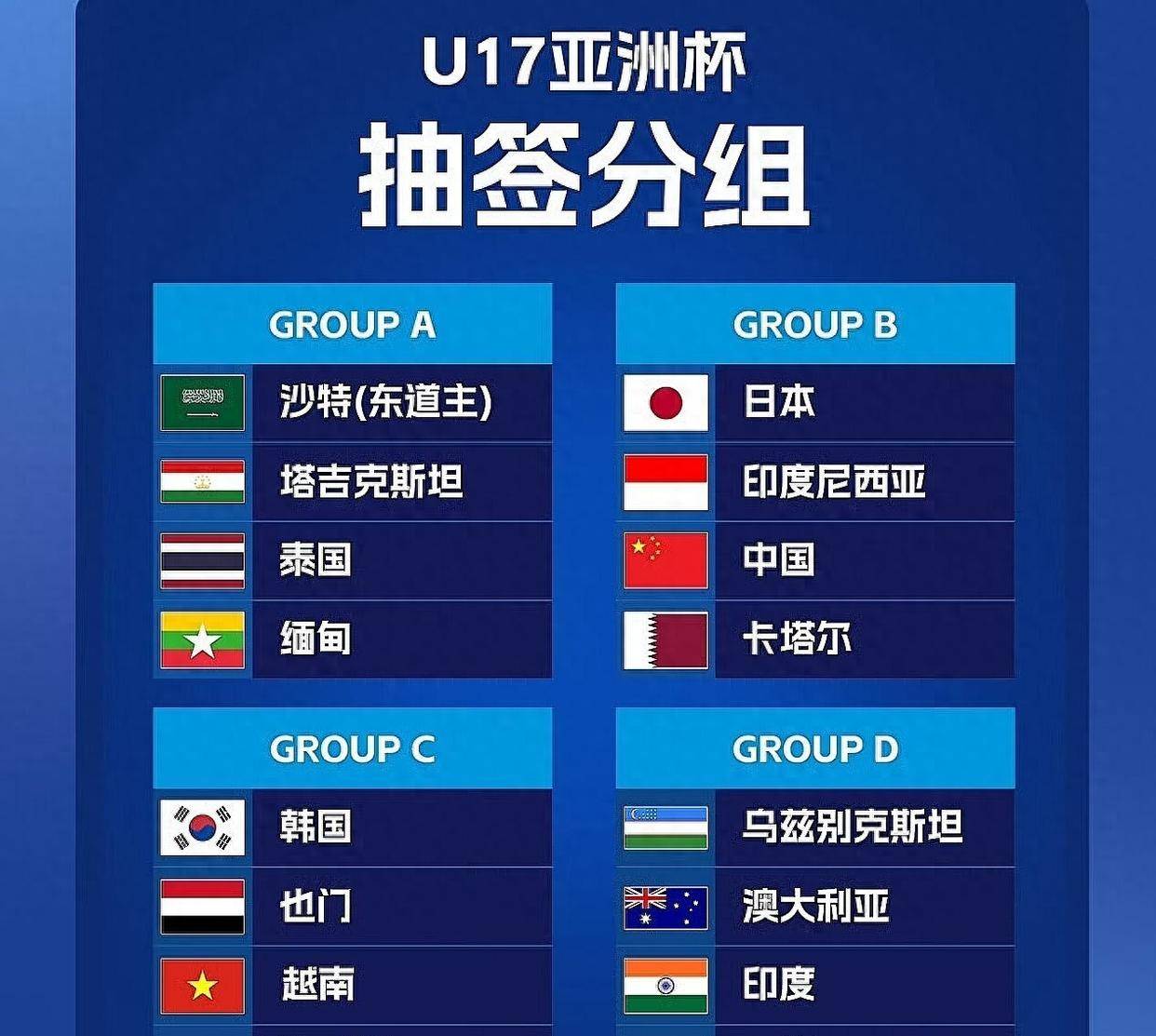 U23亚洲杯后U17亚洲杯分组锁定中国U17或将与U23_直播_赛事直播LIVE日本队相遇决赛