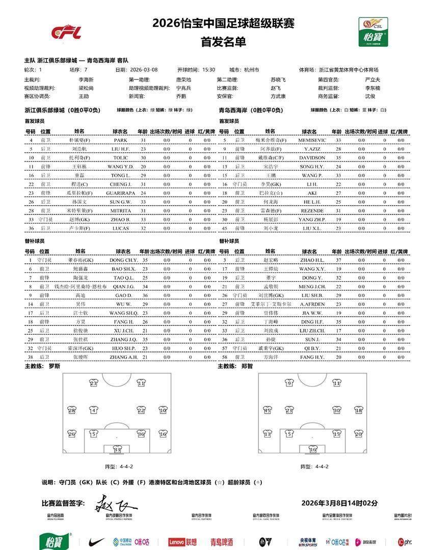 亚洲杯,U23,U23直播,亚洲杯直播,U23在哪里观看,中国足球,李昊,U23亚洲杯,U23亚洲杯直播,U23亚洲杯赛事2026年3月8日下午,杭州黄龙体育中心,一场看似普通的中超首轮对决,却因为两个门将和一堆负数,成了新赛季最值得玩味的开场戏。 U23亚洲杯上“封神”的国门李昊,在青岛西海岸的球门前高接低挡,却依然没能阻止球队0-2落败。 而让他饮恨的,正是对面那位同样一夫当关、却更幸运的同行——浙江队门将赵博。