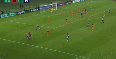 下半场的比赛,中国队并没有换人,而是坚持着上半场的打法。其实中国队的这套阵容在防守方面的不足已经暴露了。日本队就是简单的通过多人小组配合去拉扯中国队的防线,而后利用弧顶区域所产生的空档完成最后的射门,然而,中国队在该区域的保护不足的问题,则被日本队被反复利用。