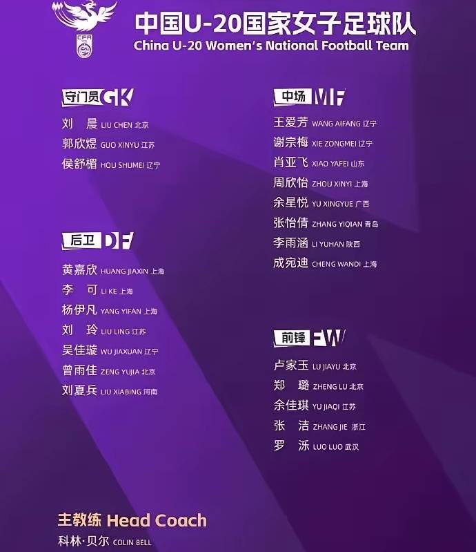 另外,从中国女足U20女足名单来看,有3名球员已经入选国家队。分别是:刘晨(门将)、王爱芳(中场)、号谢宗梅(边锋)。另有3人是“准国脚”她们分别是:黄嘉欣(中后卫)、9号卢家玉(前锋)、7号周欣怡(前锋),并且还有李可、肖亚飞、余星悦、郑璐、这些精英小将辅助。