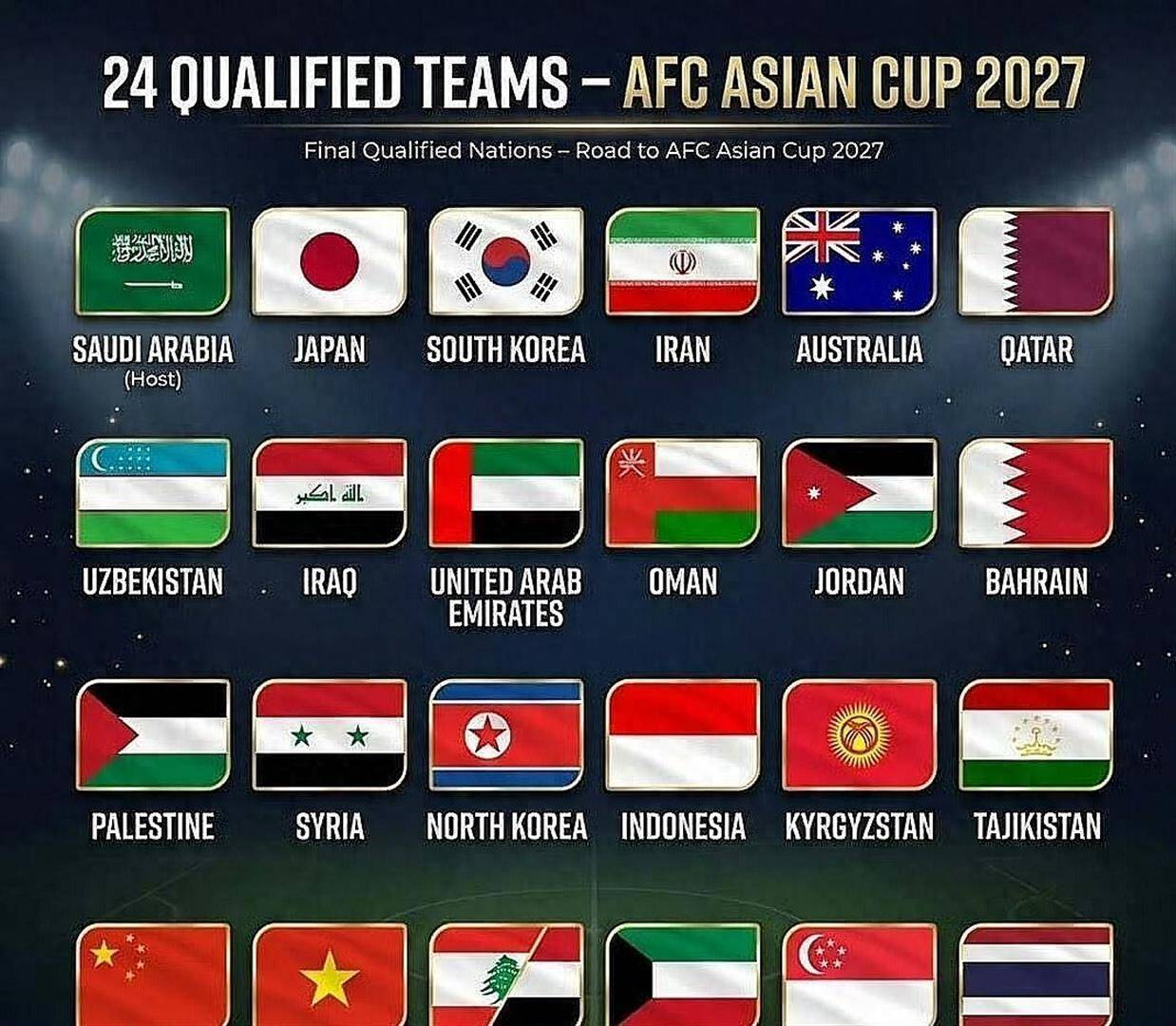 正是这个亚洲第15的排名,直接决定了国足在本届亚洲杯上的命运。 根据亚足联的规则,2027年沙特亚洲杯的24支参赛队将严格依照国际足联排名进行分档。 排名亚洲前6的球队进入第一档,第7到12名进入第二档,第13到18名进入第三档,最后6名进入第四档。 因此,排名亚洲第15的中国队,毫无悬念地被划入了第三档球队的阵营。