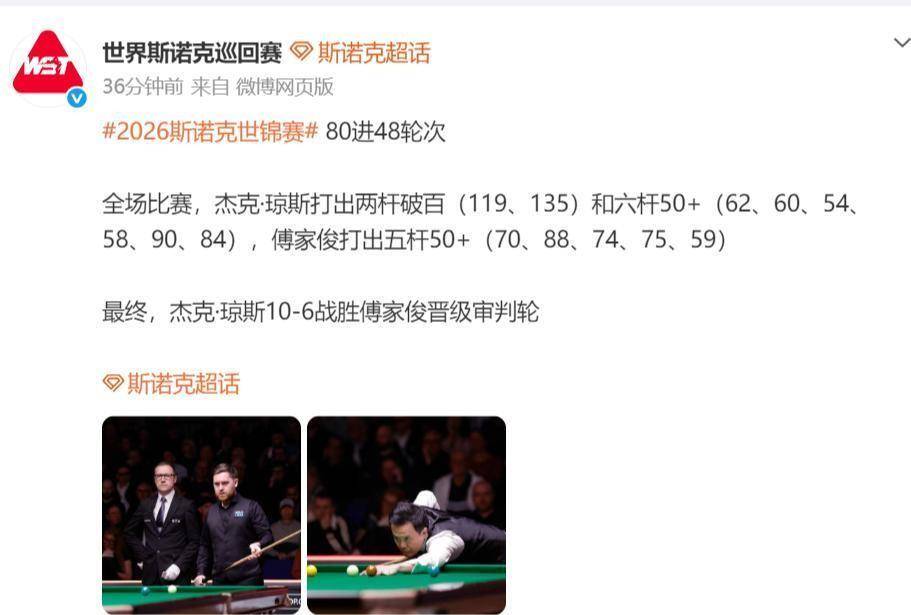 然而,常冰玉的147满分杆虽然价值14.7万英镑,却没能换来一场胜利;傅家俊虽然打出了五杆50 ,最终还是以6-10不敌状态火热的杰克·琼斯。 这种胜利与遗憾交织的画面,正是竞技体育最真实的写照。