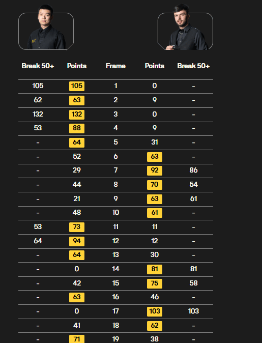 晋级轮首个比赛日,曾经打出中国斯诺克新生代的第一杆满分147分的周跃龙、曾经获得年度最佳新秀的庞俊旭,以及江俊、高阳携手出战,向世锦赛正赛发起冲击。本轮,周跃龙的对手是单局限时赛冠军迈克尔-霍尔特。双方的第一阶段,周跃龙以6-3领先对手。