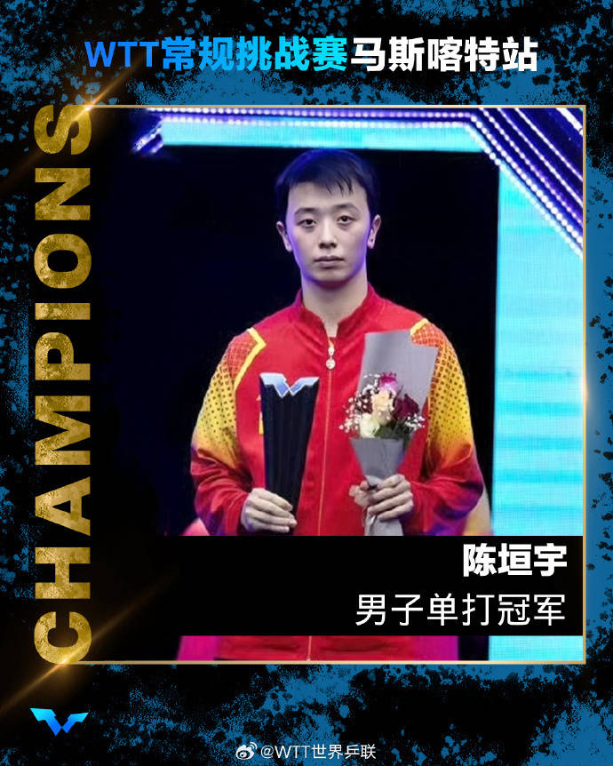 最终,陈垣宇凭借强势发挥,晋级马斯喀特站男单决赛。而他在冠军战的对手是男单1号种子张本智和,后者是夺冠最大热门。面对1号种子,当时只有19岁的陈垣宇打得非常出色,总比分4-2夺得冠军。
