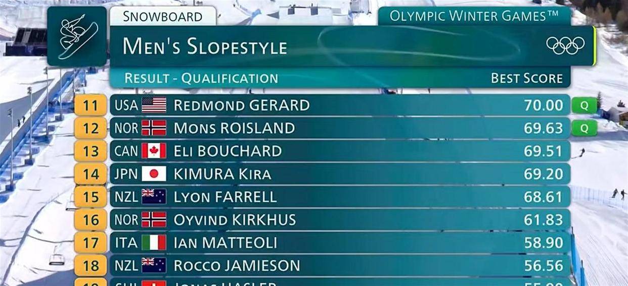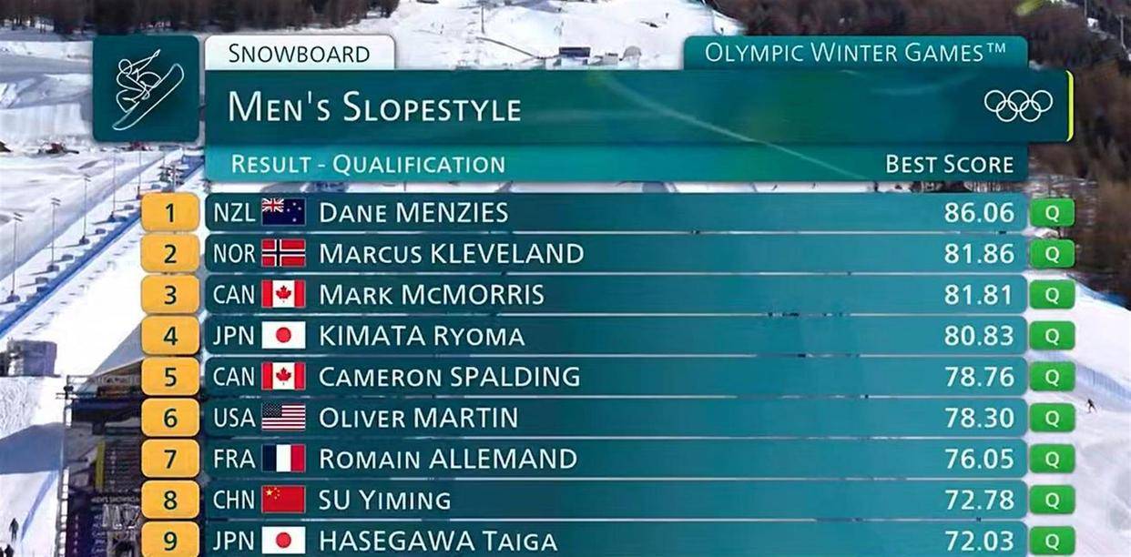 从北京到米兰,四年时间,单板滑雪这个项目的竞争格局已经天翻地覆。 四年前能争金夺银的1800度动作,现在成了晋级的“基准线”。 预赛里,顶尖选手普遍都能完成1980度动作,甚至有人尝试2160度。 新西兰的门齐斯、加拿大的麦克莫里斯、日本的木俣椋线分,放在四年前的北京冬奥会预赛,是能排到前列的成绩,但这次只能勉强挤进前八。