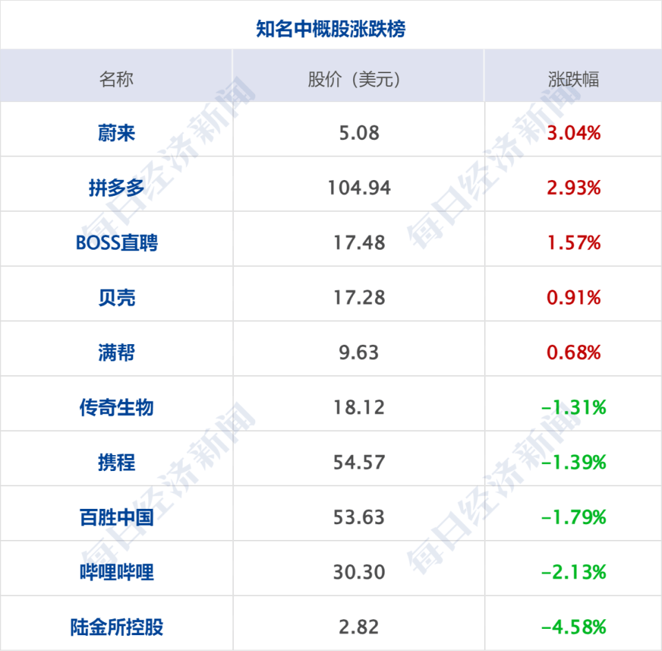 在海外上市的中资概念股方面,市场呈现出涨跌不一的格局。纳斯达克中国金龙指数微跌0.05%。具体来看,世纪互联跌近5%,哔哩哔哩和百胜中国跌幅均超过2%。然而,新能源汽车制造商蔚来表现强劲,上涨超过3%,爱奇艺也录得近3%的涨幅。