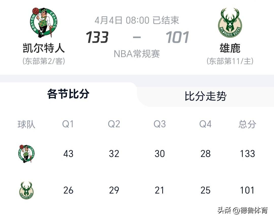 另一场东部焦点战中,波士顿凯尔特人坐镇主场迎战密尔沃基雄鹿,原本备受期待的强强对话却呈现出一边倒的态势。塔图姆贡献23分11篮板9助攻的准三双数据,布朗则砍下25分,双探花火力全开,统治了攻防两端。凯尔特人从首节便确立领先优势,半场拉开差距,下半场更是火力全开。雄鹿队这边,利拉德仅得到21分,字母哥的缺阵让球队进攻效率大打折扣,防守端更是被凯尔特人彻底撕碎。最终,绿军以32分的大胜巩固了东部第一的地位,而雄鹿则遭遇惨败,东部排名岌岌可危。