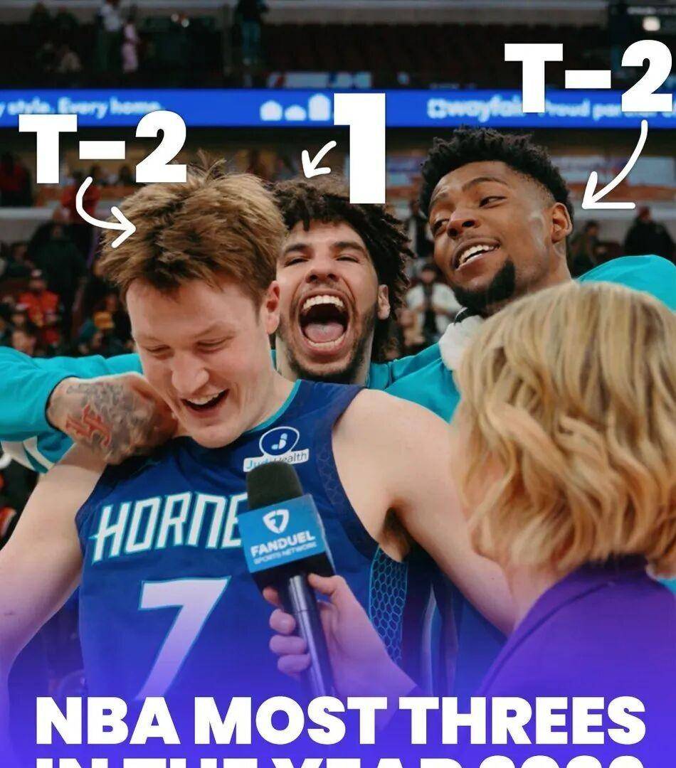去年的探花秀布兰登·米勒投进90个,位列第三。 一支球队的三名核心球员,霸占着联盟远程火力的最顶端,这画面在几年前根本无法想象。 球迷们开始给他们起外号,“东部海啸兄弟”、“夏洛特三杆火枪”。