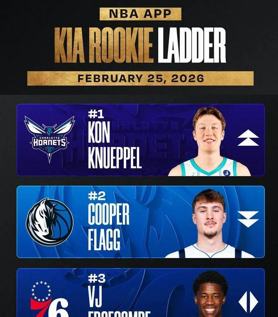 在最新一期由NBA官方发布的新秀实力榜上,克尼普尔的名字已经超越了达拉斯独行侠的状元秀库珀·弗拉格,升至第一位。